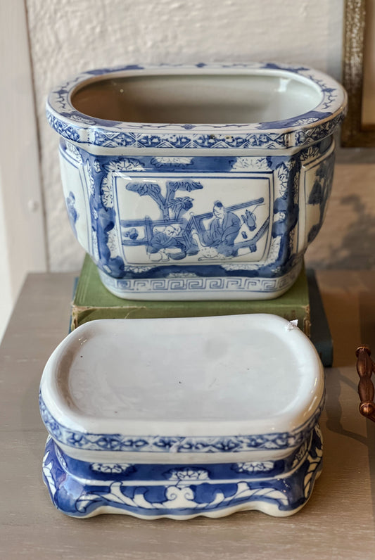 Vintage Chinoiserie Blue and White Planter Pot