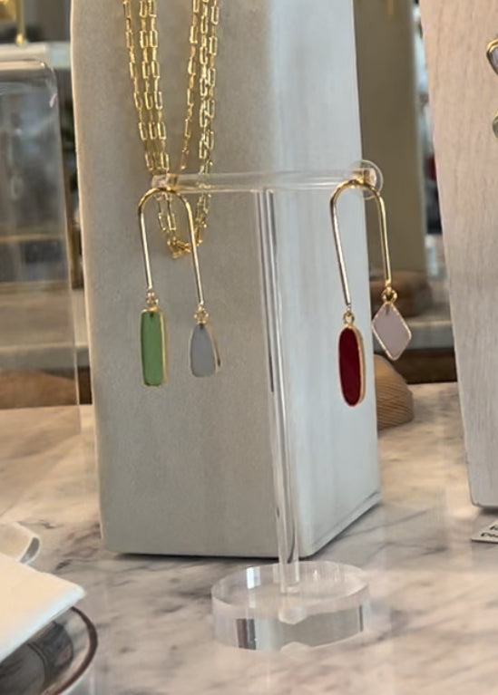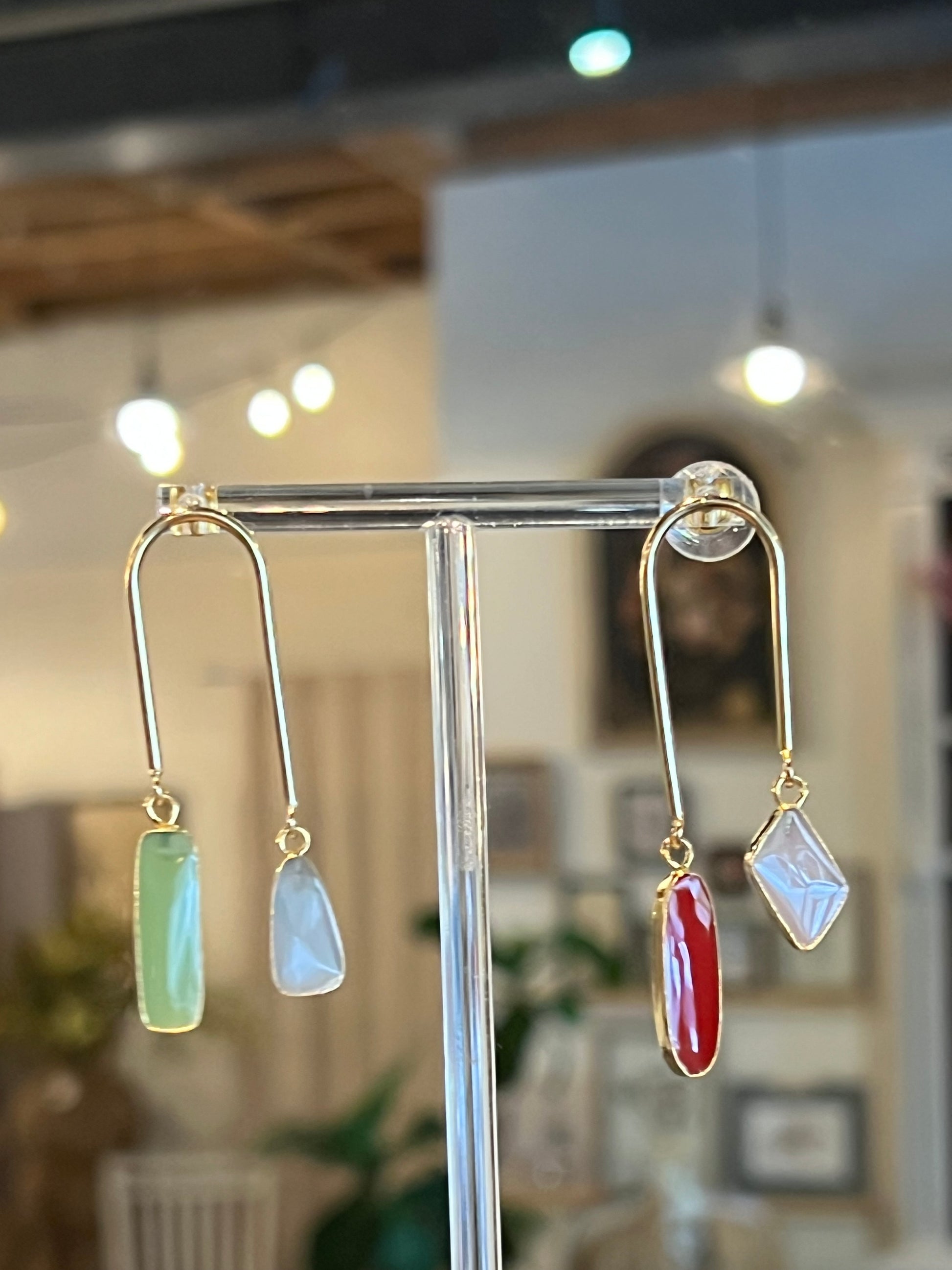 Gold Arched Asymmetrical gemstone earrings.