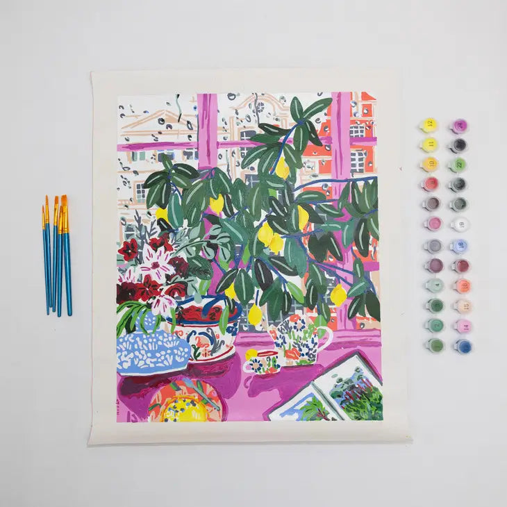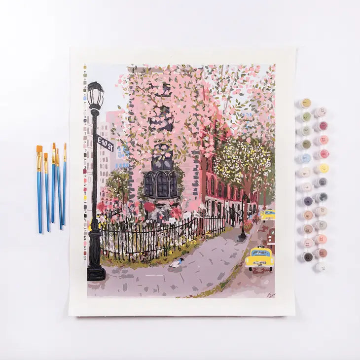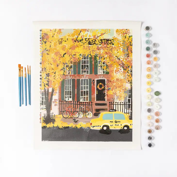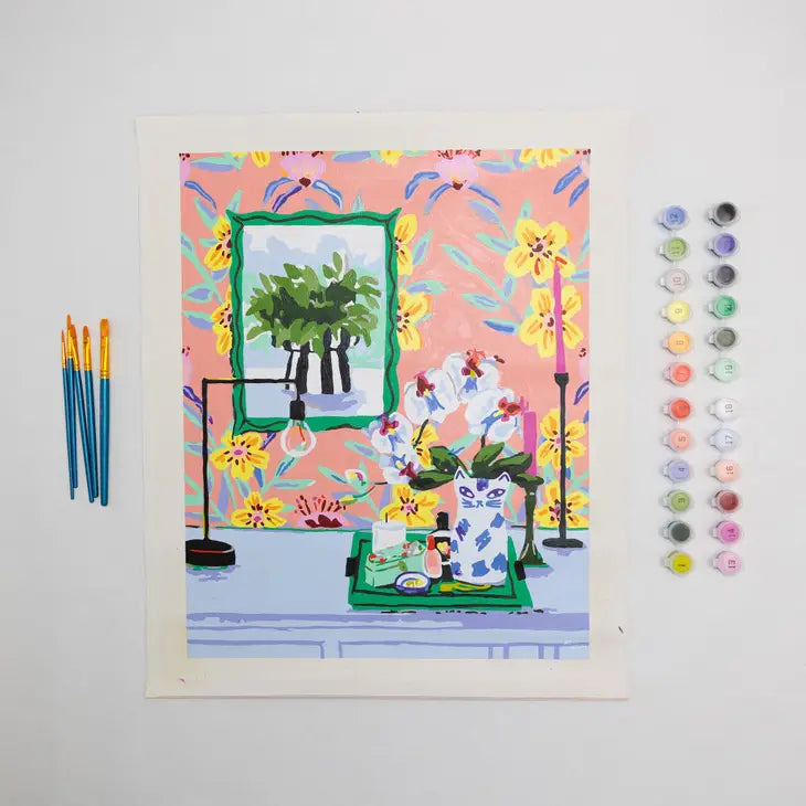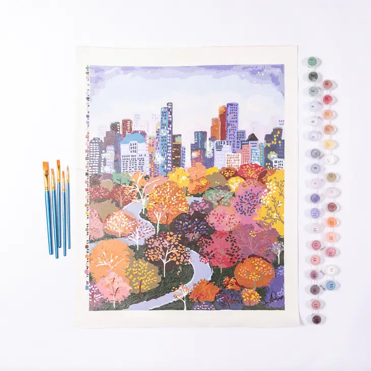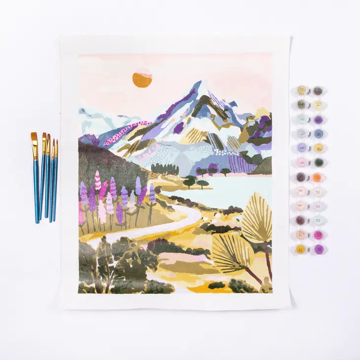 These are original illustration that have been transformed into a paint-by-number. This kit includes a set of 5 premium brushes, pots of acrylic paint with the appropriate colors with corresponding numbers, and a 16x20 inch canvas. Also to make your craft easy and more joyful we have added a small printed finished picture to guide and inspire your painting.