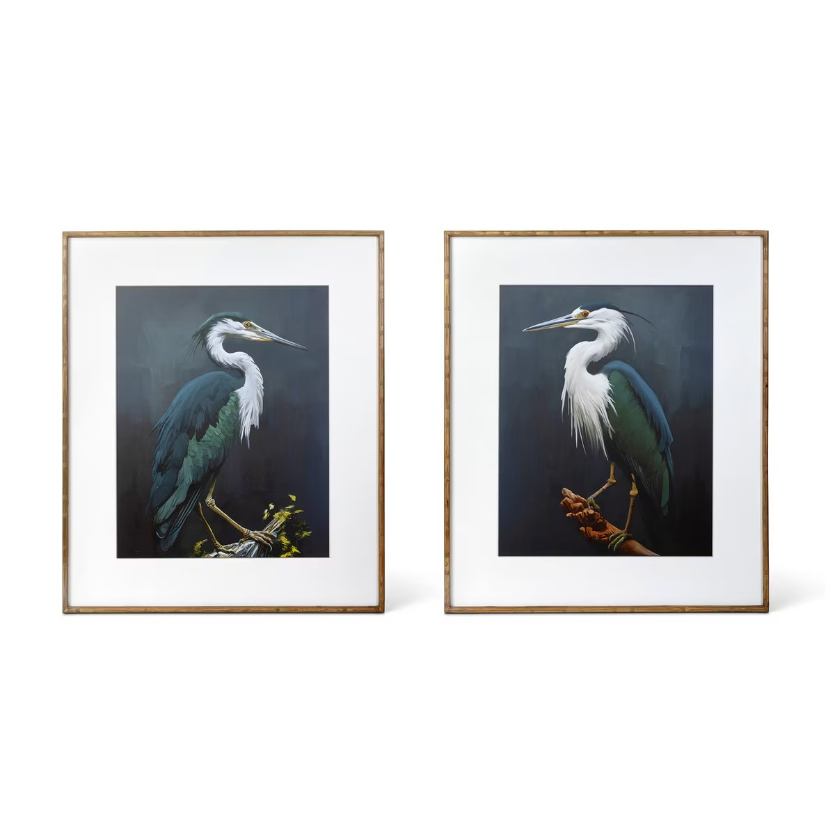 Celebrate the serene beauty of nature with our Birds of a Feather Heron Wall Art. This collection features two stunning heron prints in deep, rich blue and green tones, each framed to capture their peaceful elegance. These exclusive pieces bring a nature-inspired touch to any room, creating a tranquil and timeless atmosphere that elevates your home decor with sophisticated charm.