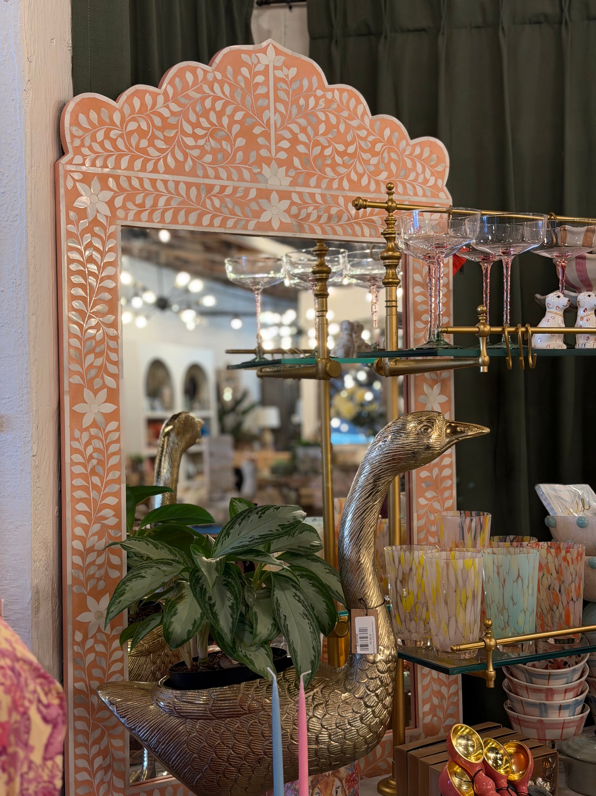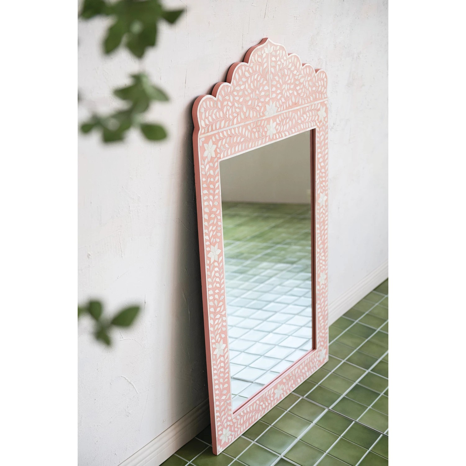 MDF & Resin Framed Wall Mirror with inlaid bone flowers & leaves.
