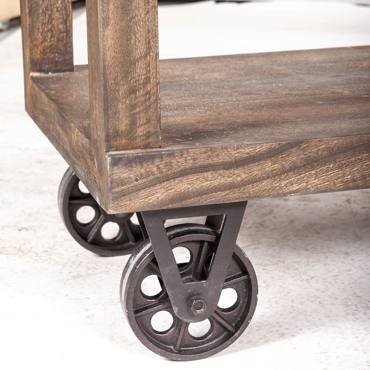 Rolling wood bookshelf, with industrial wheels. Perfect for displaying your favorite items or in your work room/office.