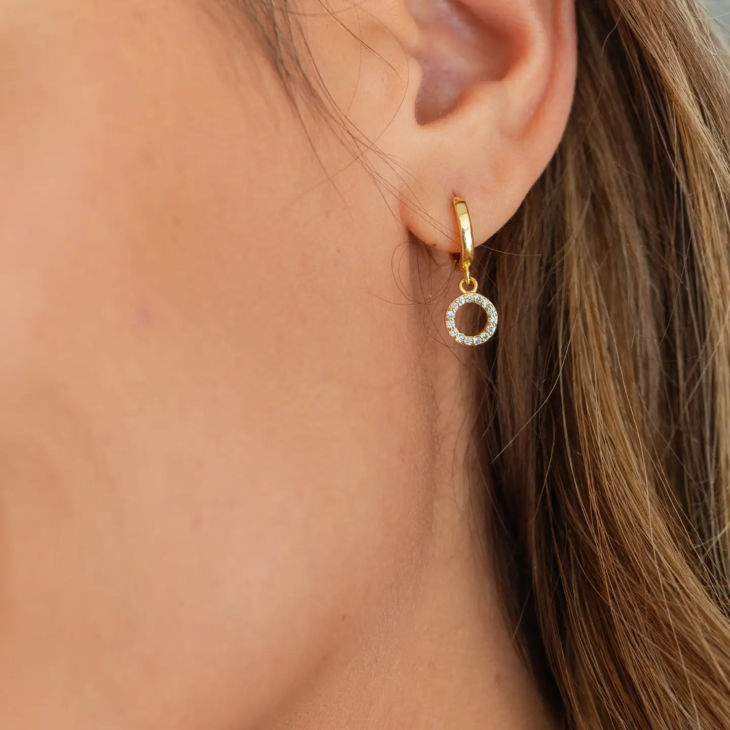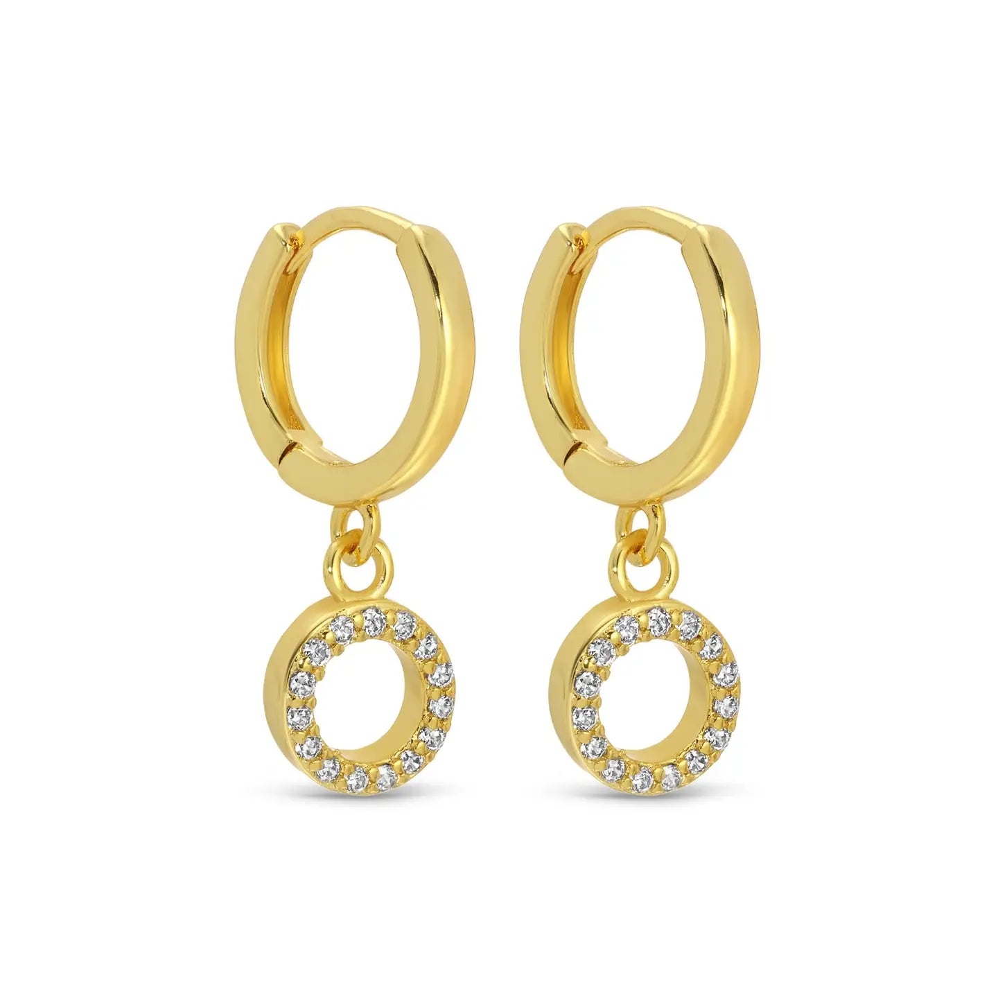 These small huggies bring subtle brilliance to any look. Each pair features a pave circle drop, creating a stunning sparkle without being overly showy. Wear them alone for a classic look, or layer them with other earrings for extra impact.