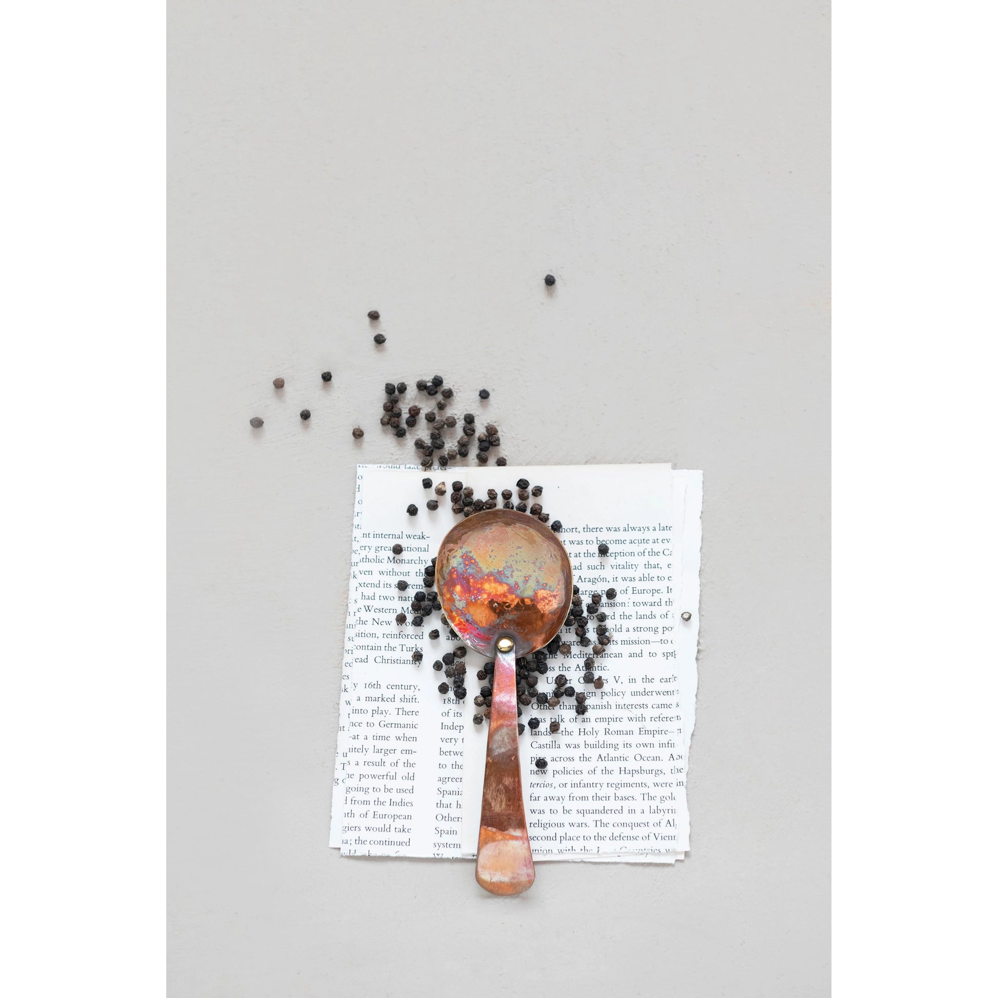 One look at this spoon and it will be a must-have. This spoon is features hammered copper with a gorgeous burnt finish. For serving or display, these spoons will dazzle your guests. Perfect for anyone that loves unique or one-of-a-kind items.