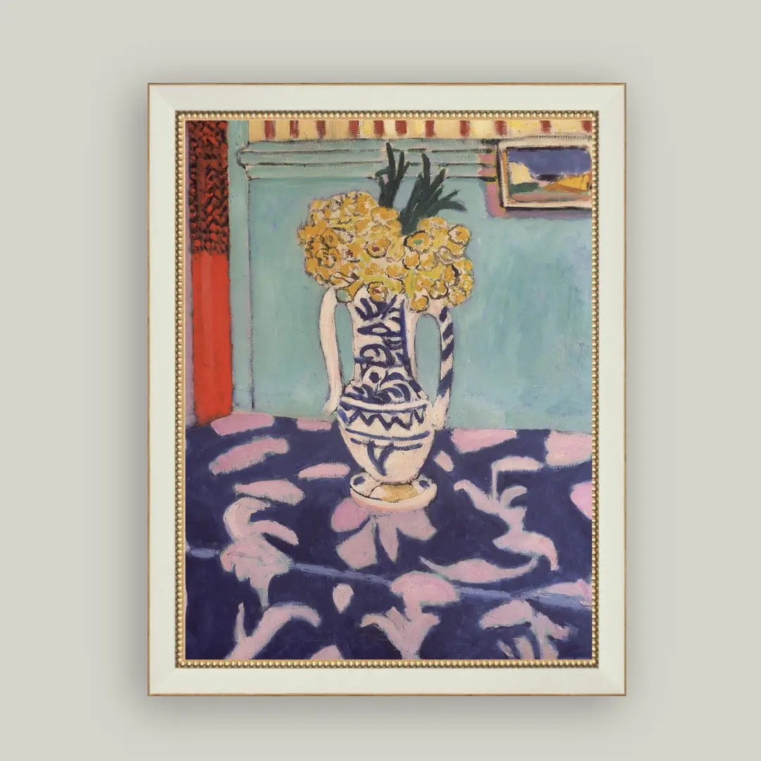 Still Life with Magnolia, a captivating art print by the esteemed Henri Matisse. This 1912 masterpiece is more than just decor; it invites warmth, wonder, and a sense of belonging into your space.