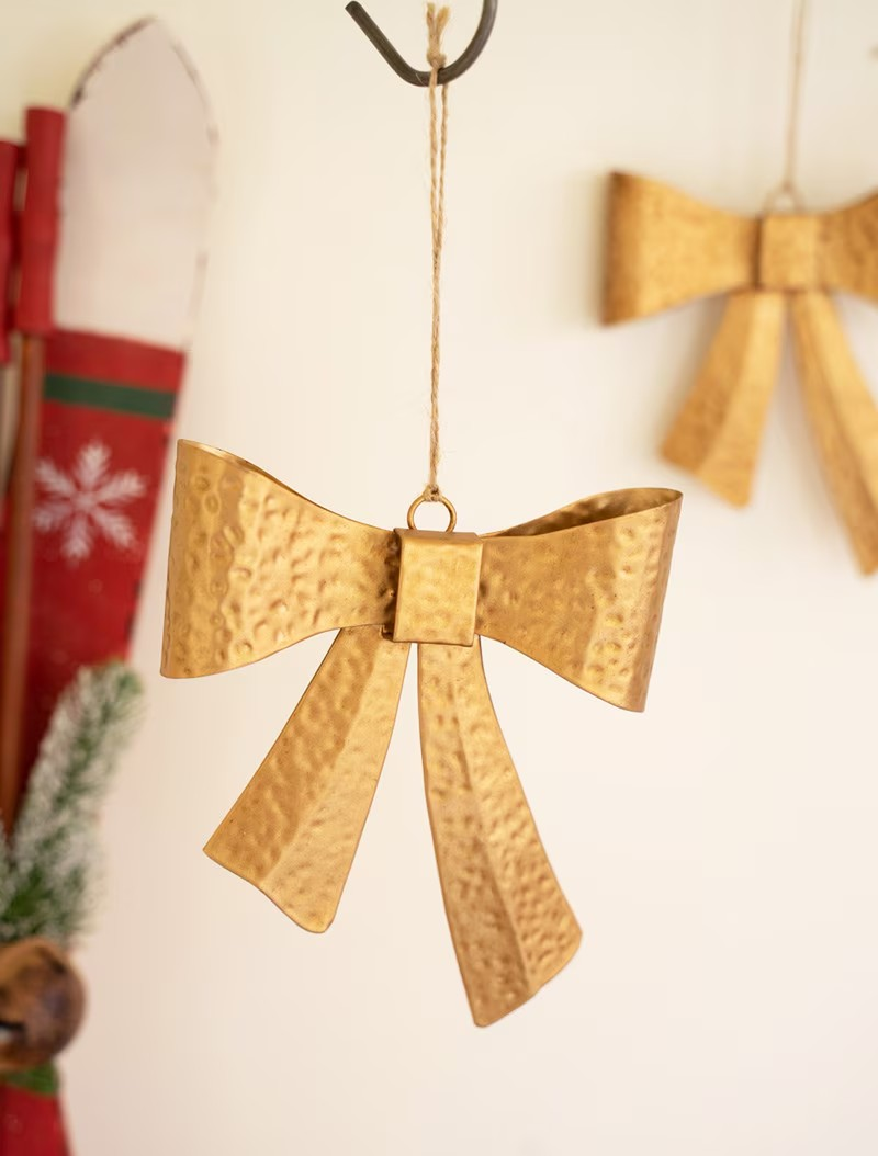 This gold metal bow is perfect for decorating your tree, wreath, or garland this holiday season!