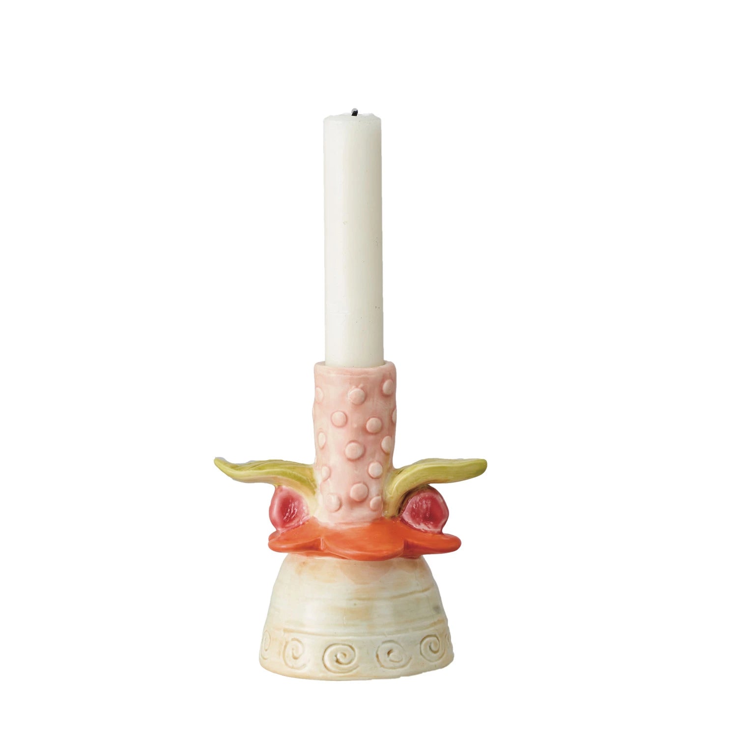 We love this eclectic mix of hand-painted candlestick holders. They will bring a fun twist to your table scape or home decor.