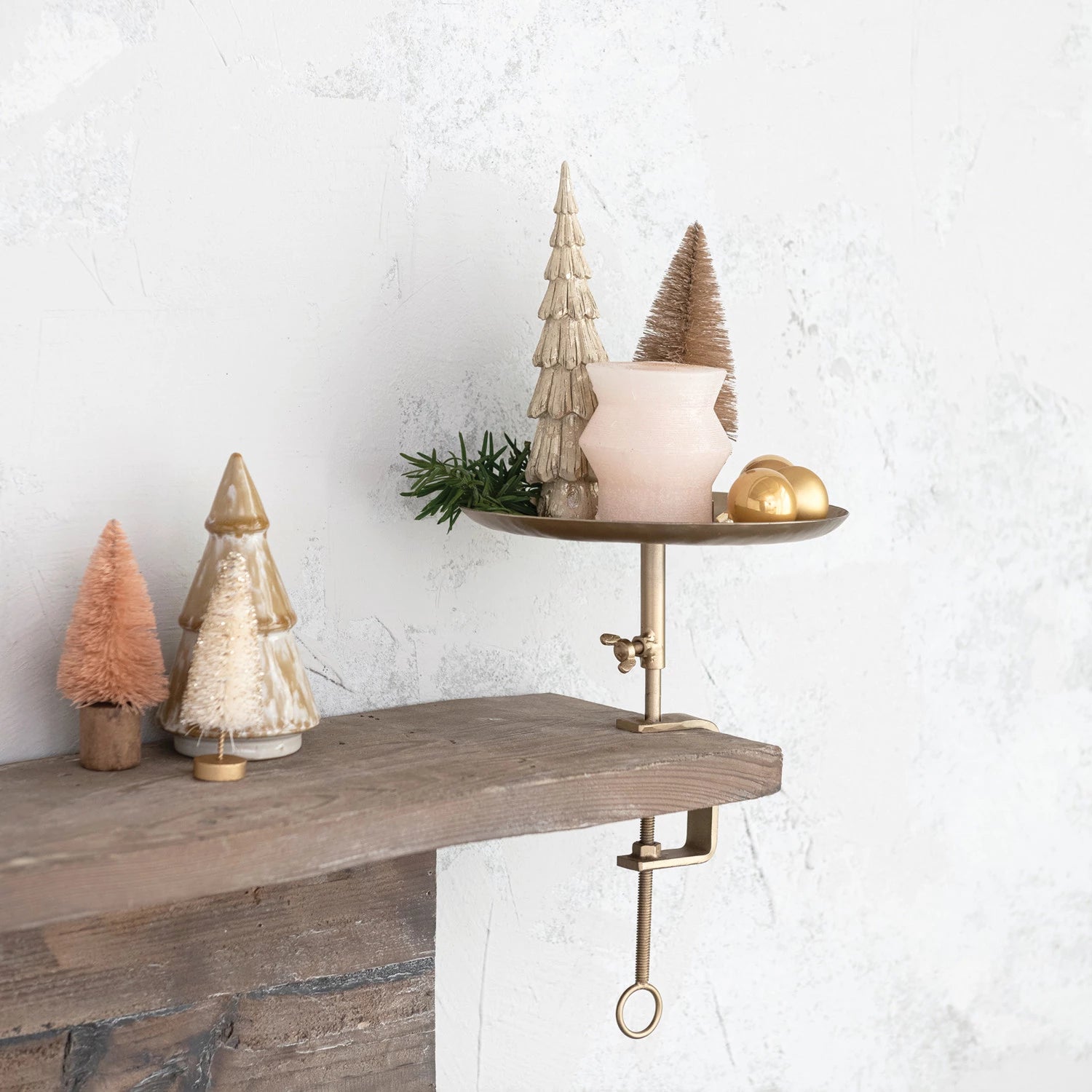 Add a fun twist to your decor this season with this industrial C-Clamp Mantel Trey.
