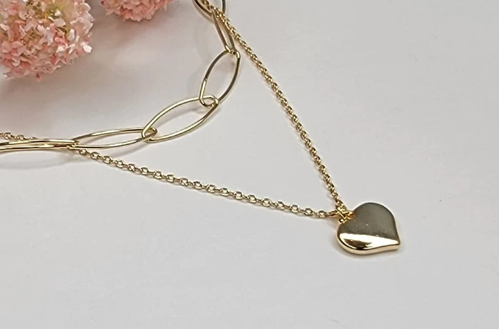 Stylish two-layer necklace, with a medium paper clip chain and heart pendant.