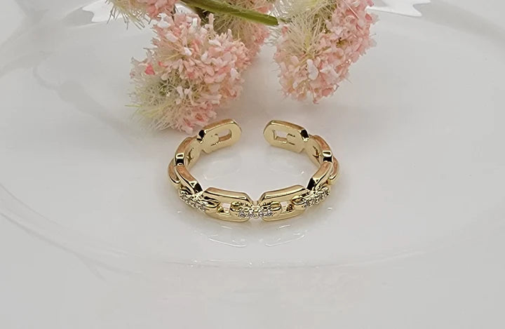 Modern chain design with cubic zirconia accents.
