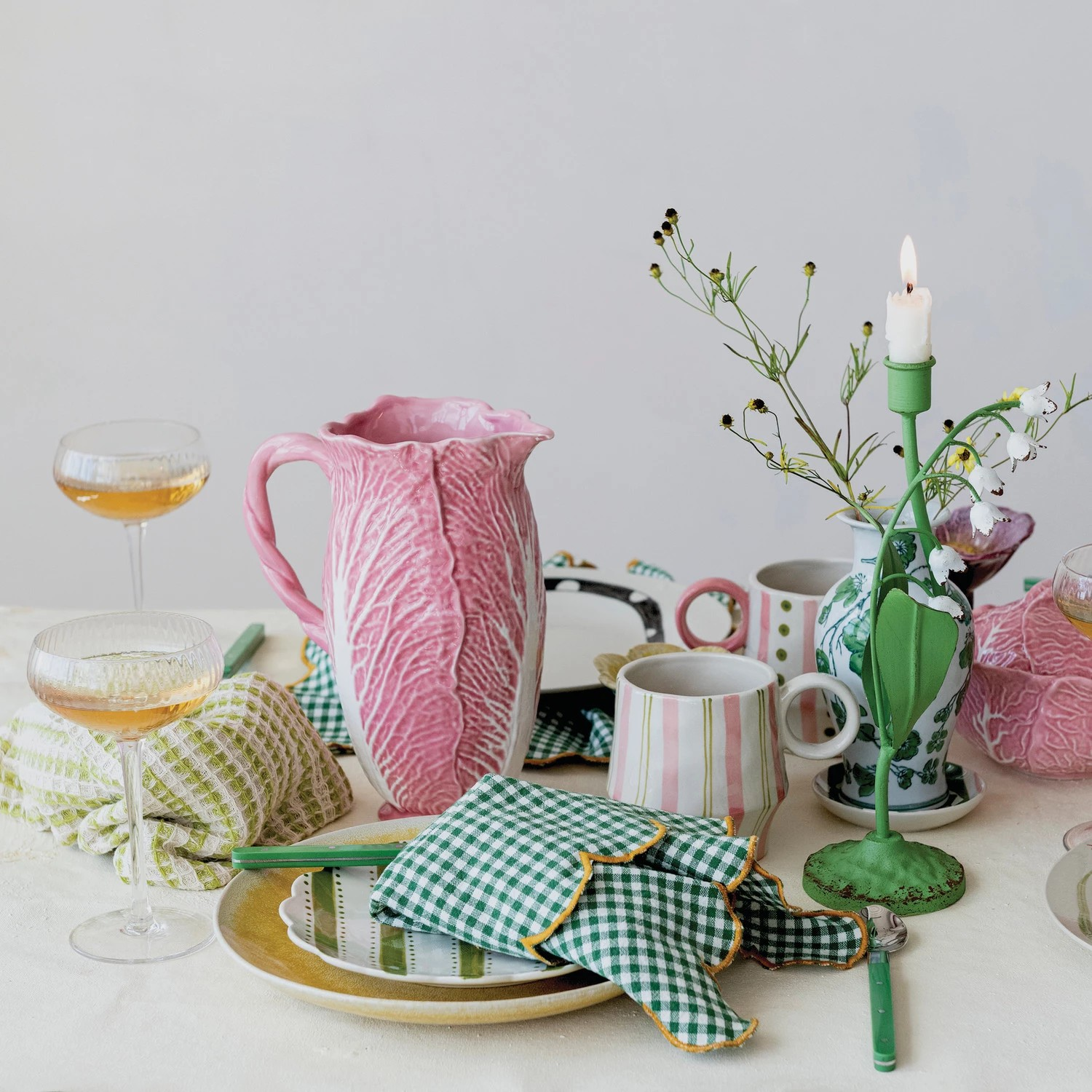 11-3/4"H Metal Vintage Reproduction Toleware Lily of the Valley Taper Holder, Green & White, 2 Styles available.