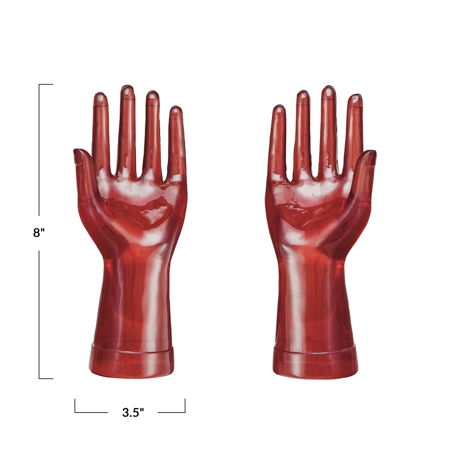 3-1/2"L x 3-1/2"W x 8"H Translucent Resin Hands, Orange Color.