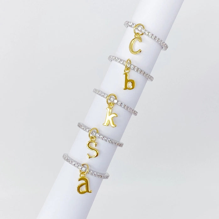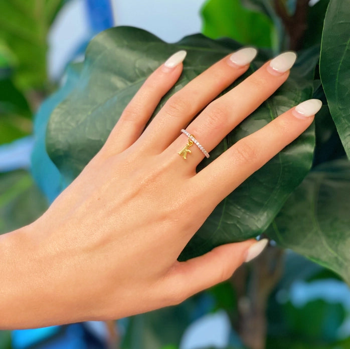 Gorgeous cubic zirconia pave ring with gold plated initial charm.