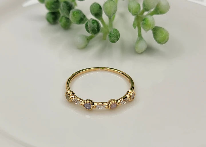 Petite vintage inspired ring with small Cubic Zirconia stones.
