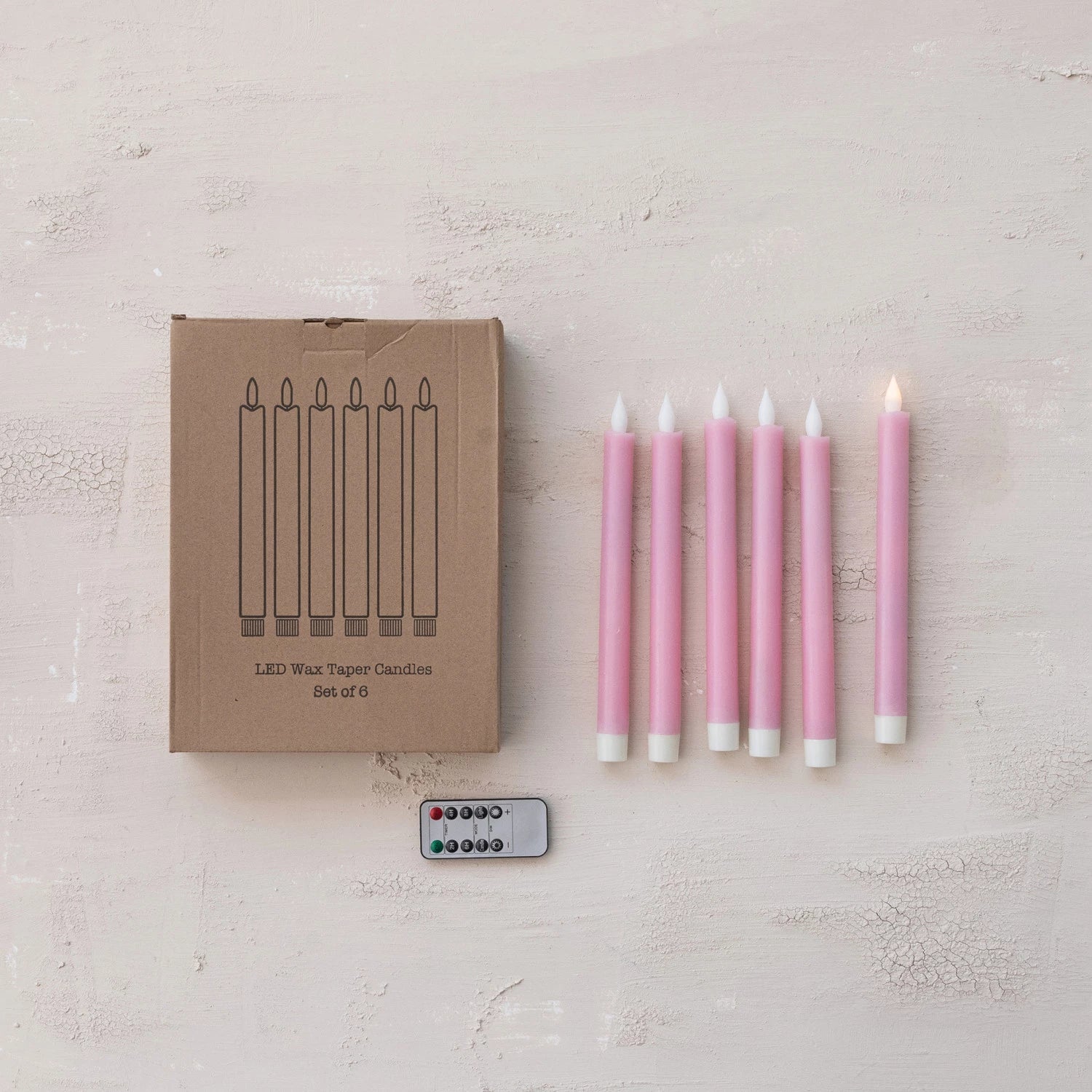 These stunning pink tapers will look fabulous as part of your table setting or on your mantel. These flameless LED tapers offer a warm candle like glow, that will not leave a mess behind. Sold in a box set of six.