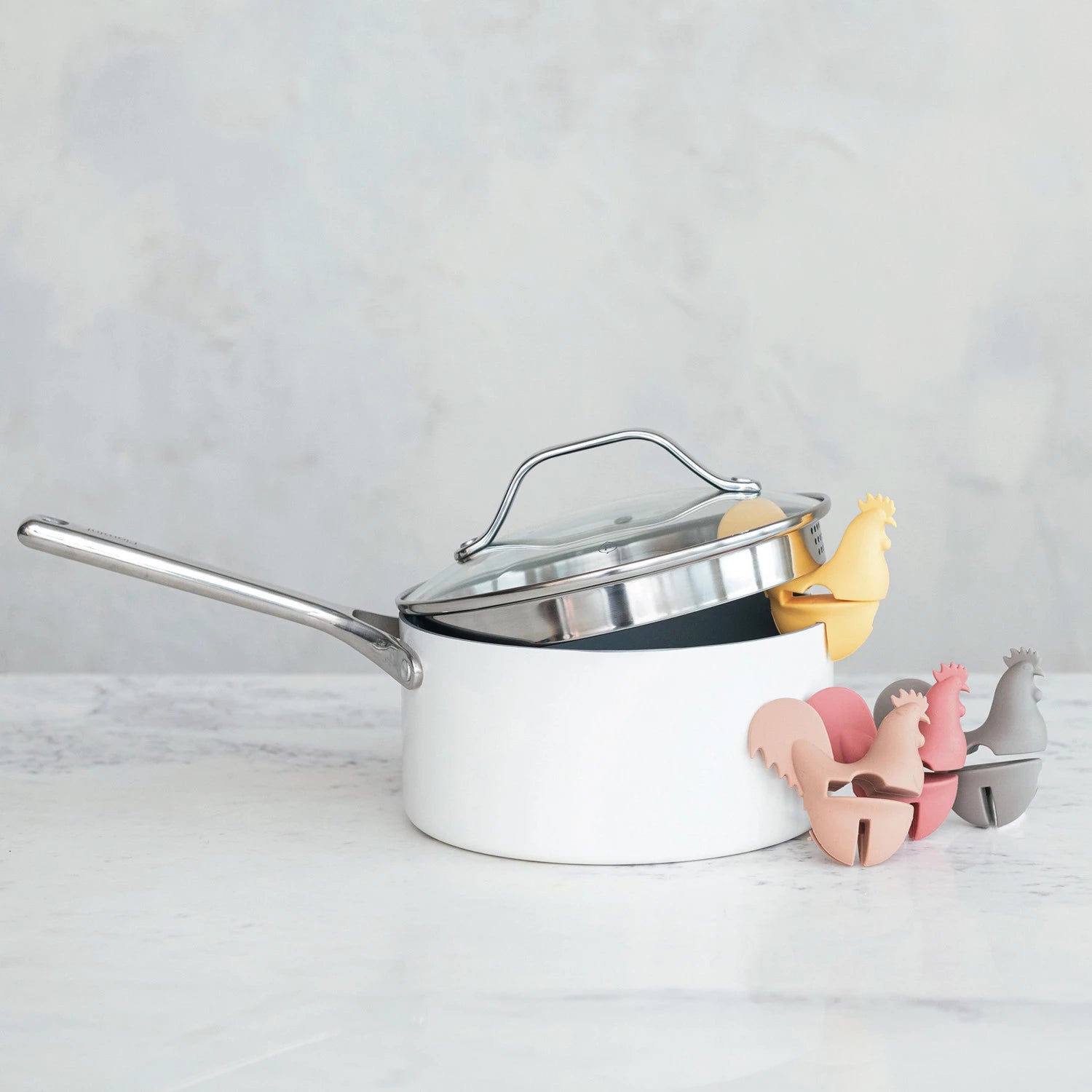 3-1/2" W x 3-1/2"H Silicone Rooster Shaped Lid/Spoon Holder, 4 Colors
