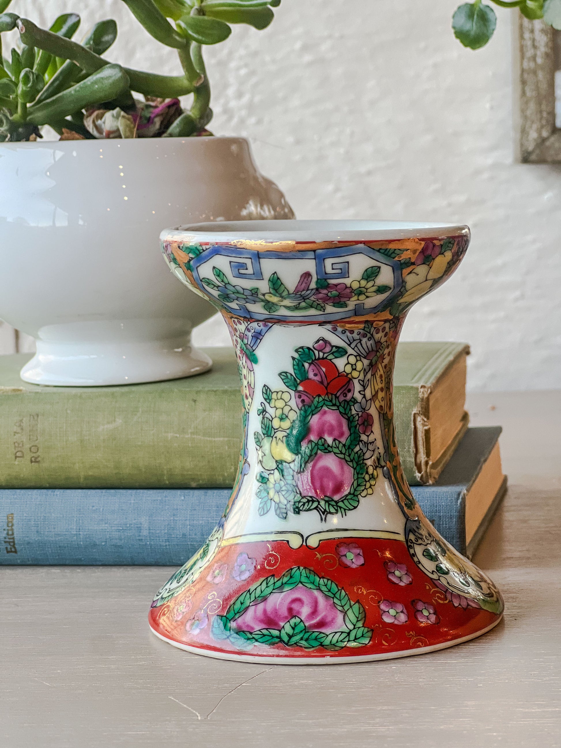 Vintage rose medallion candle stick holder. Single.