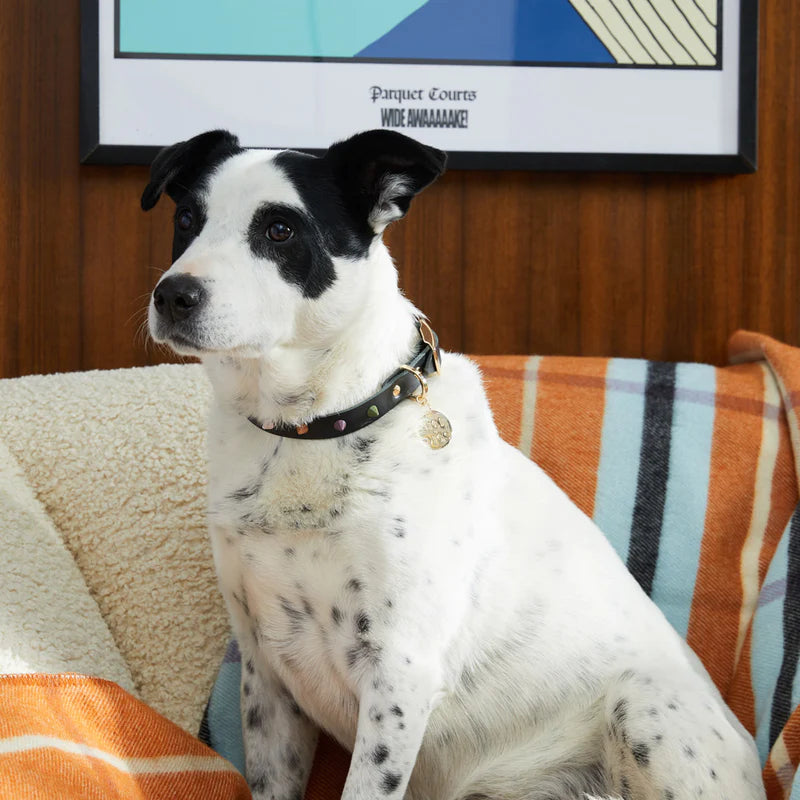 This beautiful leather collar combines durability and modern design for the poshest of pets. These beautiful collars will age like a fine wine, but an occasional wipe down with a damp cloth or leather conditioner never hurts!