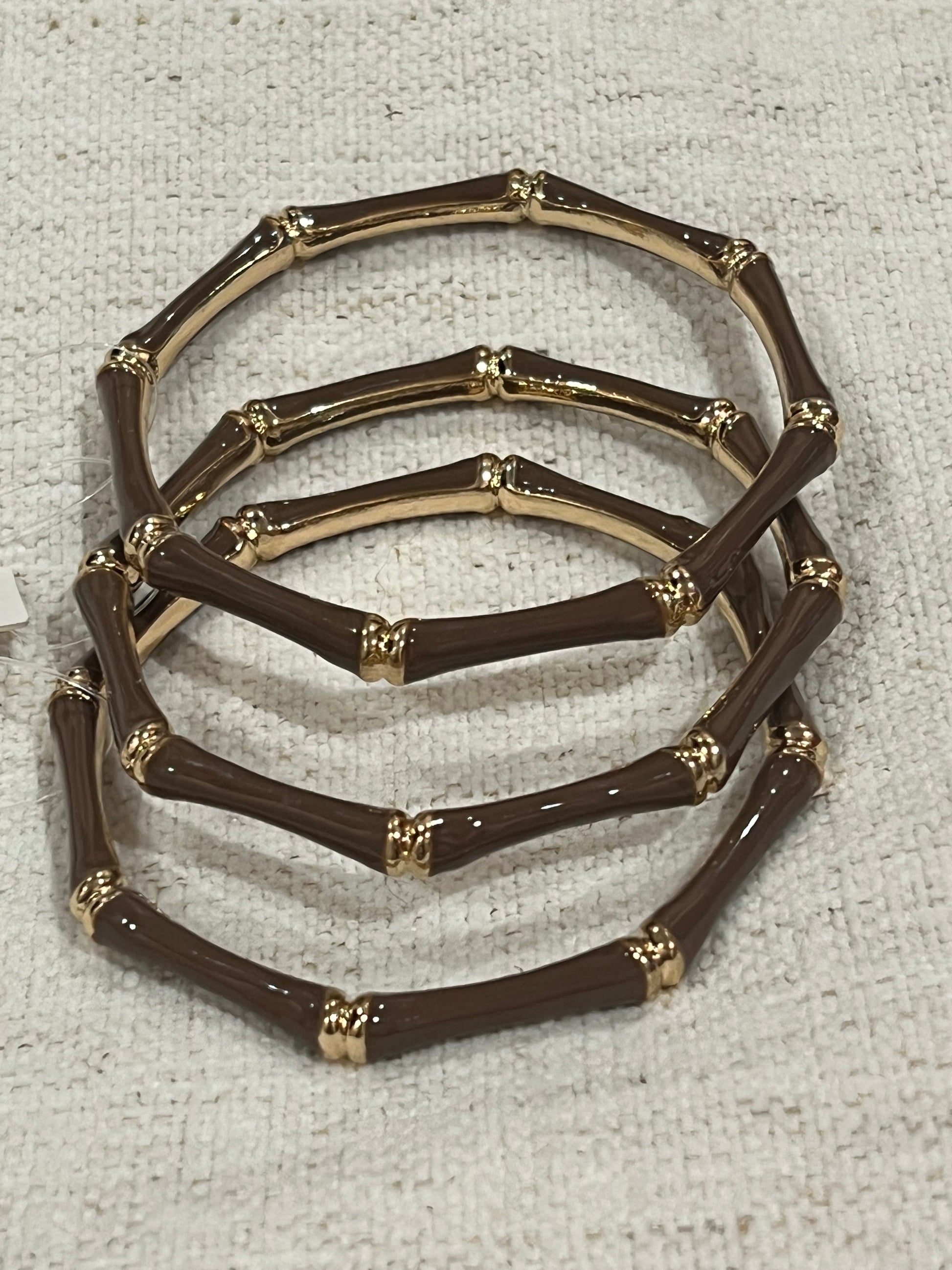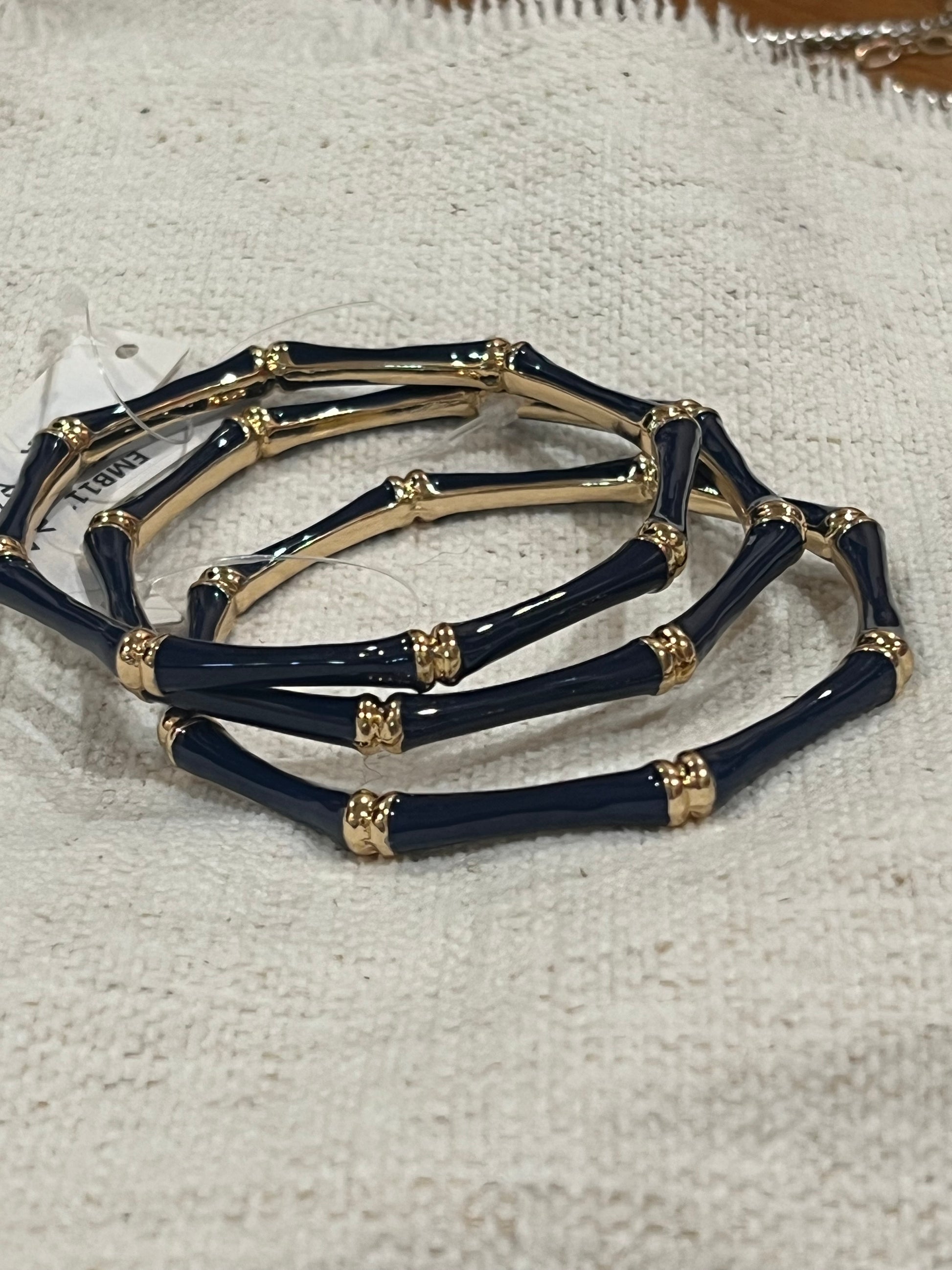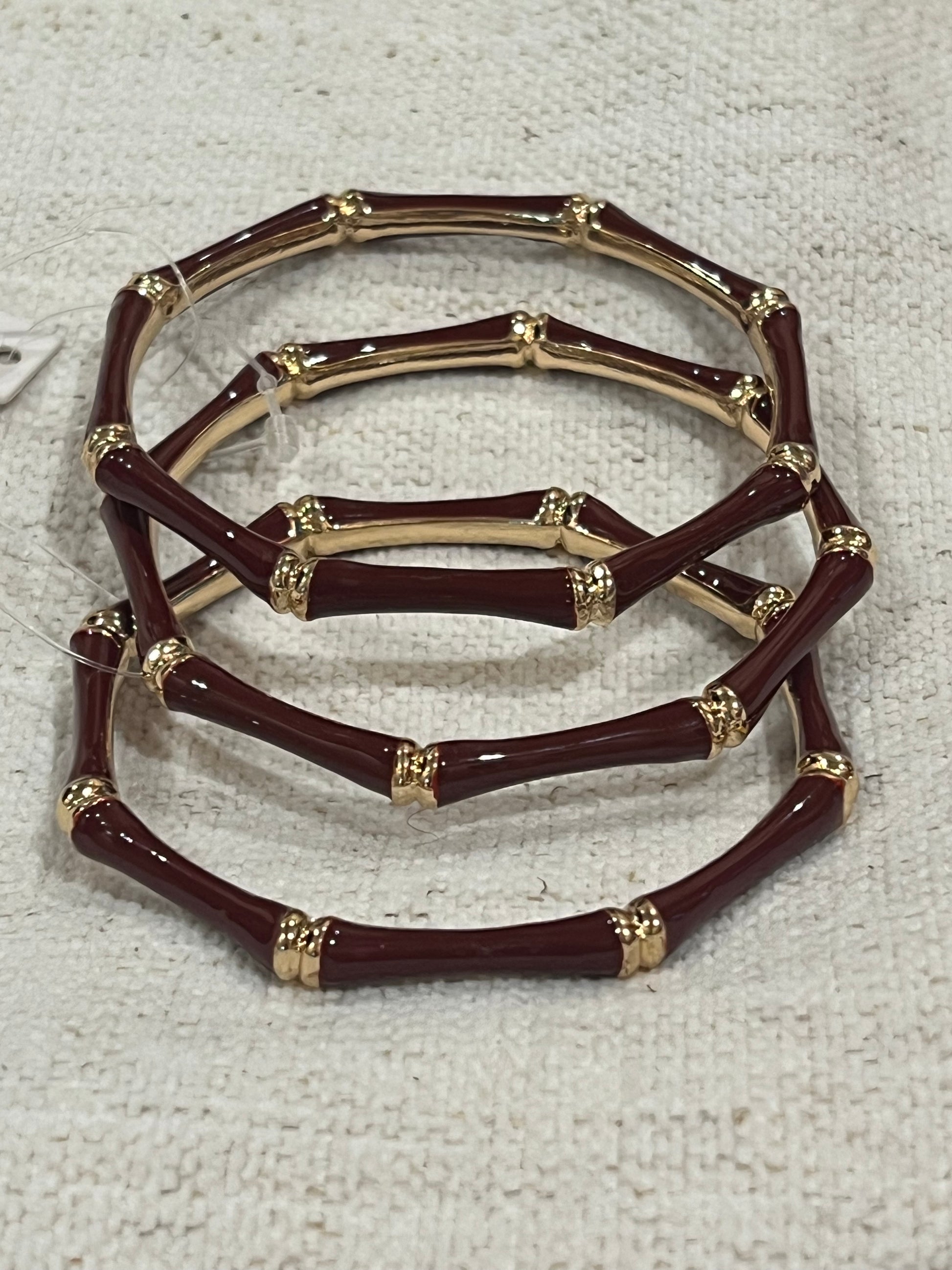 Stunning enamel bamboo bracelets with gold accents. Sold individually, pictured in threes.