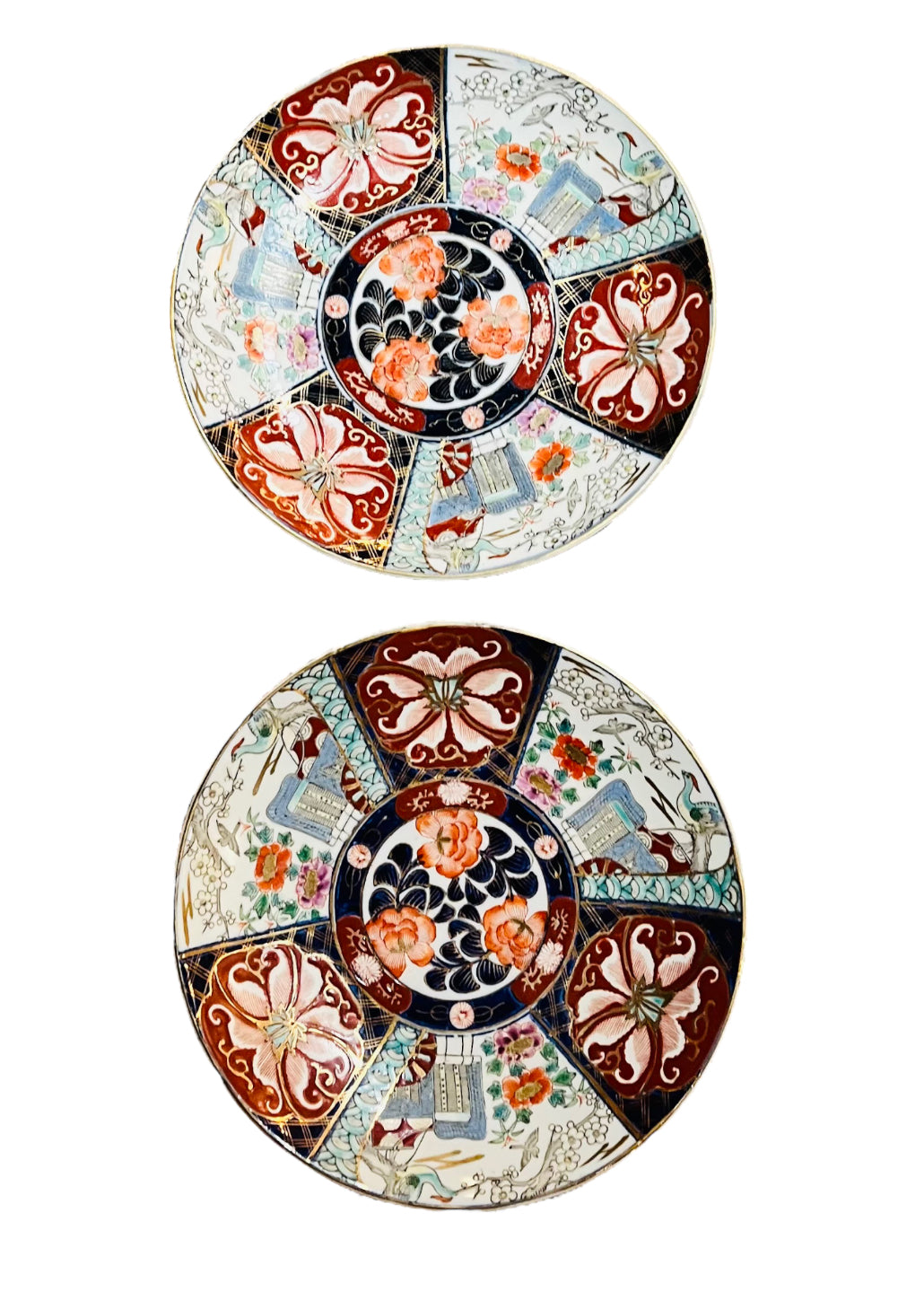 Stunning vintage chinoiserie plates, in a striking bold color palette. Stamped on the back made in Japan.
