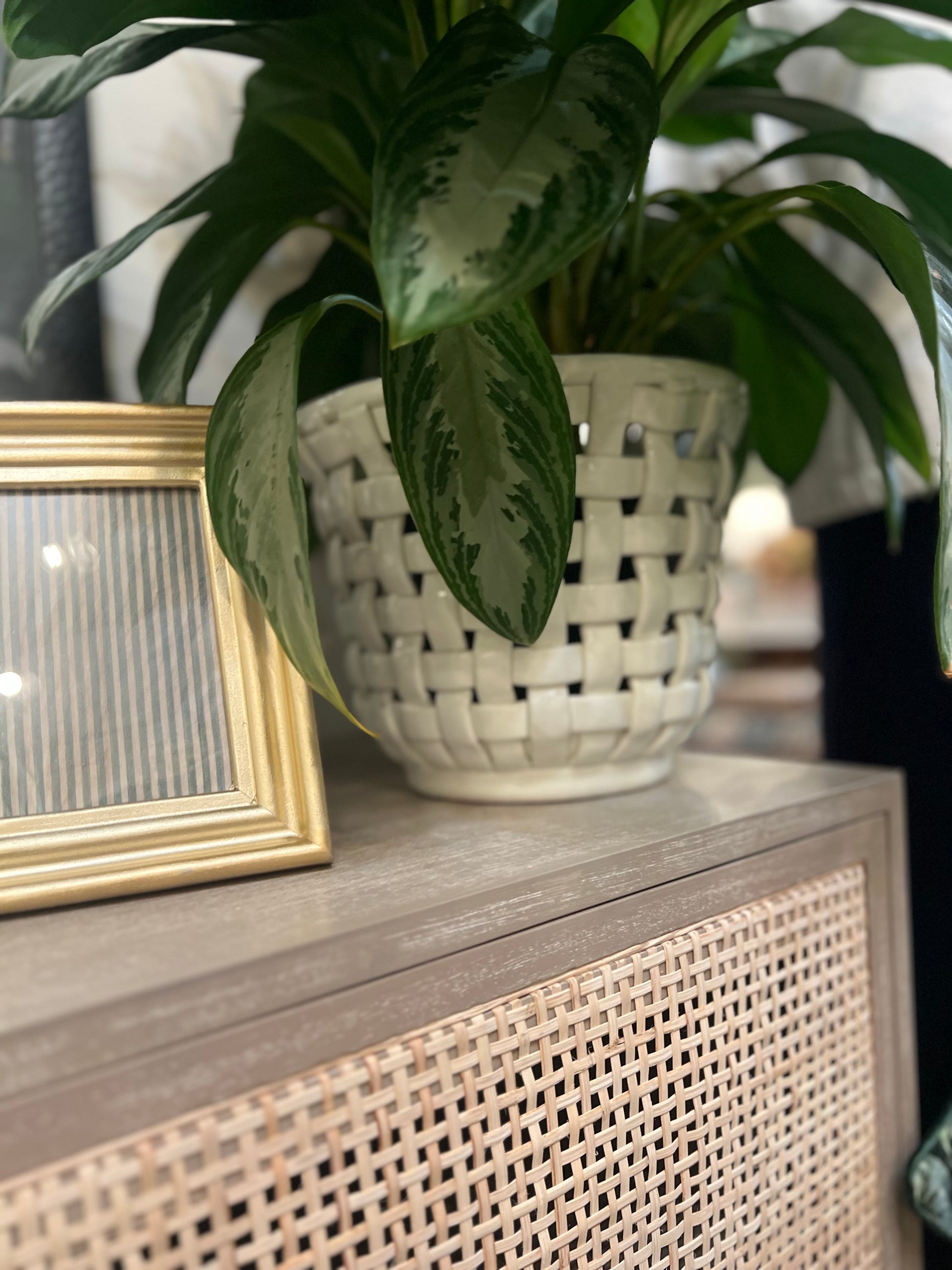 Beautiful white vase/planter with unique basketweave pattern. Made in Italy