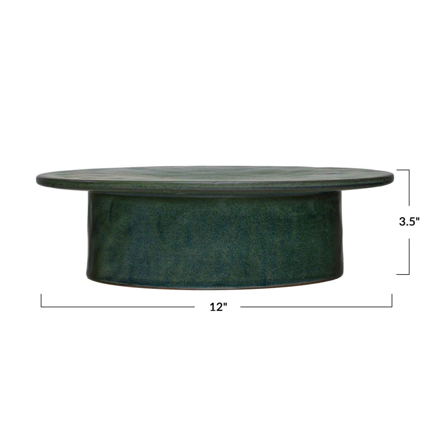 Gorgeous green stoneware pedestal with reactive glaze. Each one varies slightly.